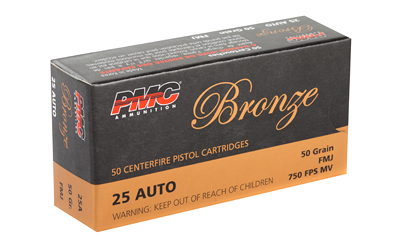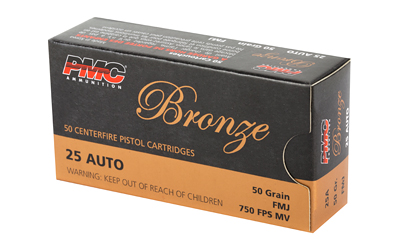 PMC Ammunition, Bronze, 25 ACP, 50 Grain, Full Metal Jacket, 50 Round Box